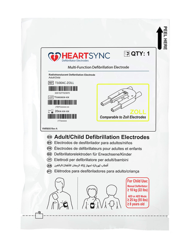 HeartSync® ZOLL® compatible Adult / Child Multi-Function Electrodes Pads for defibrillation, pacing, cardioversion and monitoring. Radiotranslucent and latex-free. Comparable to ZOLL® multi-function electrodes.