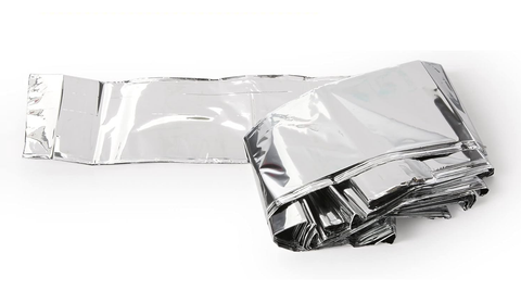 The Dynarex® Emergency Survival Blanket Foil are made of a shiny, aluminized material that blocks wind, sheds water, and directs body heat inward to raise temperature more rapidly than standard blankets. Also known as space blankets, their aluminized surface can also be turned outward to reflect sunlight for heat protection. These single-use blankets are more prone to tears and punctures than traditional fabrics.